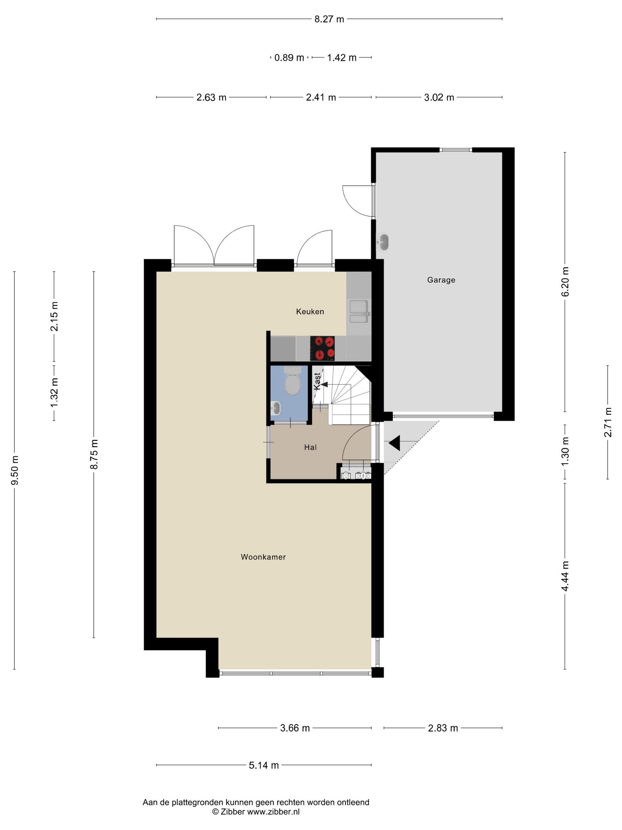 Begane grond: Entree, hal, lichte woonkamer, keuken met toegang tot de tuin, en toegang tot de eigen garage.